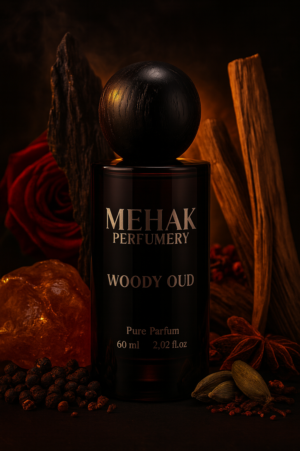 Fragrance Notes: Cardamom, Oud, Sandalwood, Rosewood, Spices, Sichuan Pepper, Amber